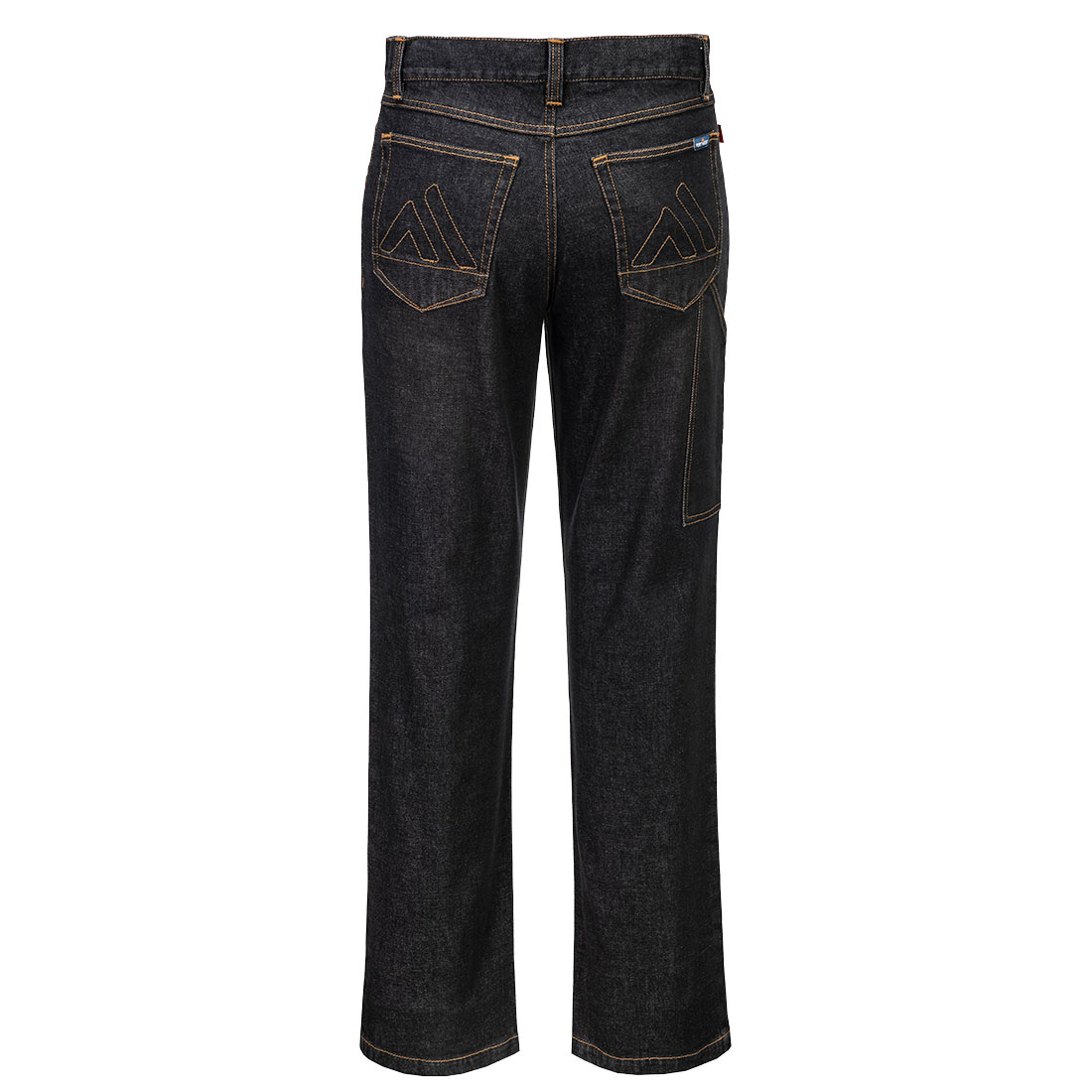 • Made from stretch cotton denim for maximum flexibility and durability. The jean has dual hazard protection and multiple pockets. The wide leg of the pants fits comfortable over work boots.